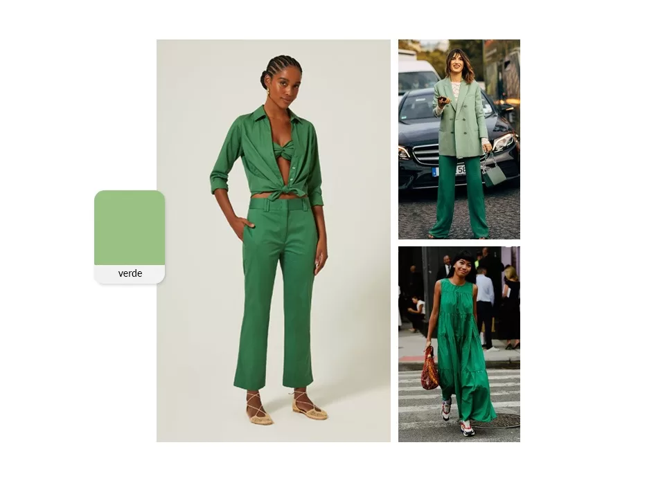 O tom da esperança! Na psicologia das cores, o verde é a cor que transmite calma e tranquilidade, uma ótima escolha para vestir no dia daquela reunião complicada no trabalho. Além de estar muito ligado a renovação de energia e a natureza, essa tonalidade consegue elevar qualquer produção do dia a dia. Os looks verdes garantem um vibe cheia de frescor que você pode embarcar sem medo.