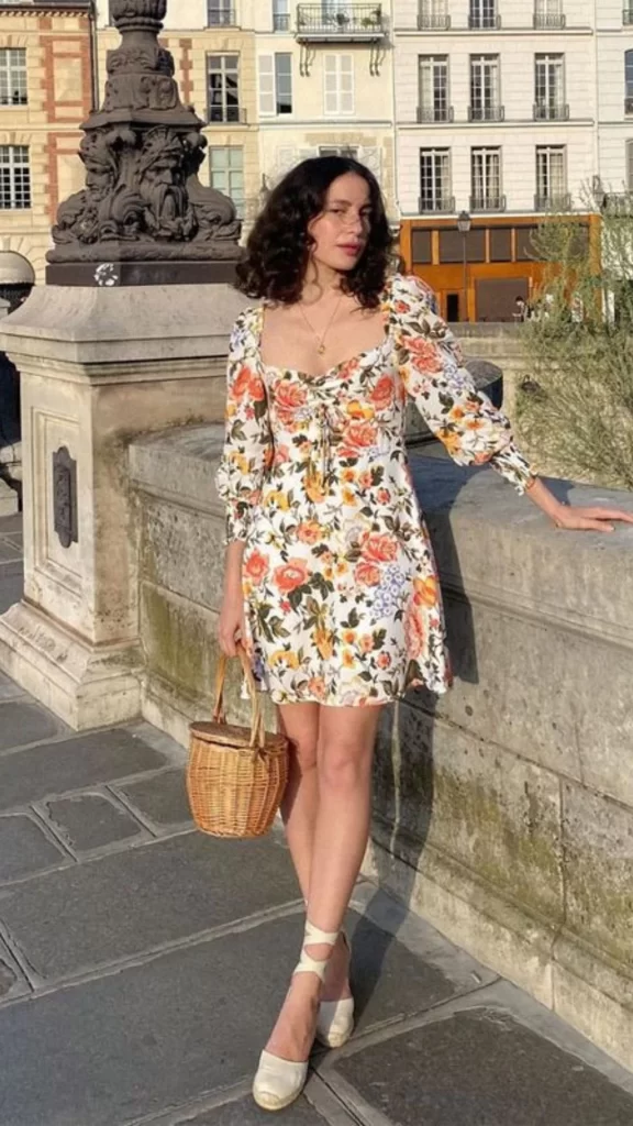 Na época, as estampas florais eram frequentemente associadas a um estilo romântico e feminino. Vestidos com saias amplas e cinturas marcadas eram estampados com padrões florais, enfatizando a delicadeza e a feminilidade das mulheres.
